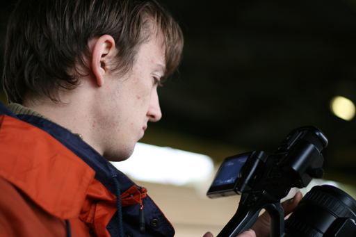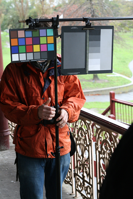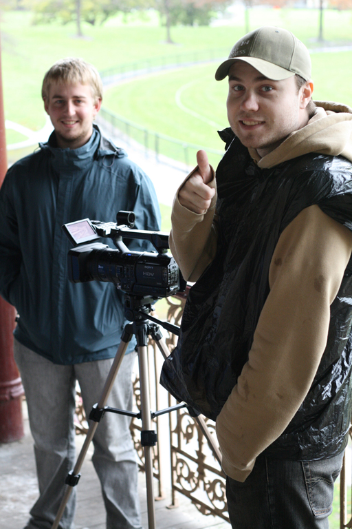Well, as I said previously, Saturday was camera test day. We piled up James and Doris (the names of my 4WD and Isaac’s van), and headed to a football grandstand in Melbourne to test some Super 16 stock. We shot several different things (colour charts, grey scale charts, city skyline, people running, etc.) using the different stocks (specifically Kodak 50D VISION2, 200T VISION2 and 500T VISION3) at different exposures, and using different filters. We also shot the exact same material using a Panasonic HVX202 and Sony Z1P (using the fixed lenses) to use as a comparison. Originally we intended to use a P+S adapter on both the digital cameras, however we couldn’t get one that weekend. The day went pretty much as planned – although the weather was horrible and freezing! Here are some photos of the day for your viewing pleasure: