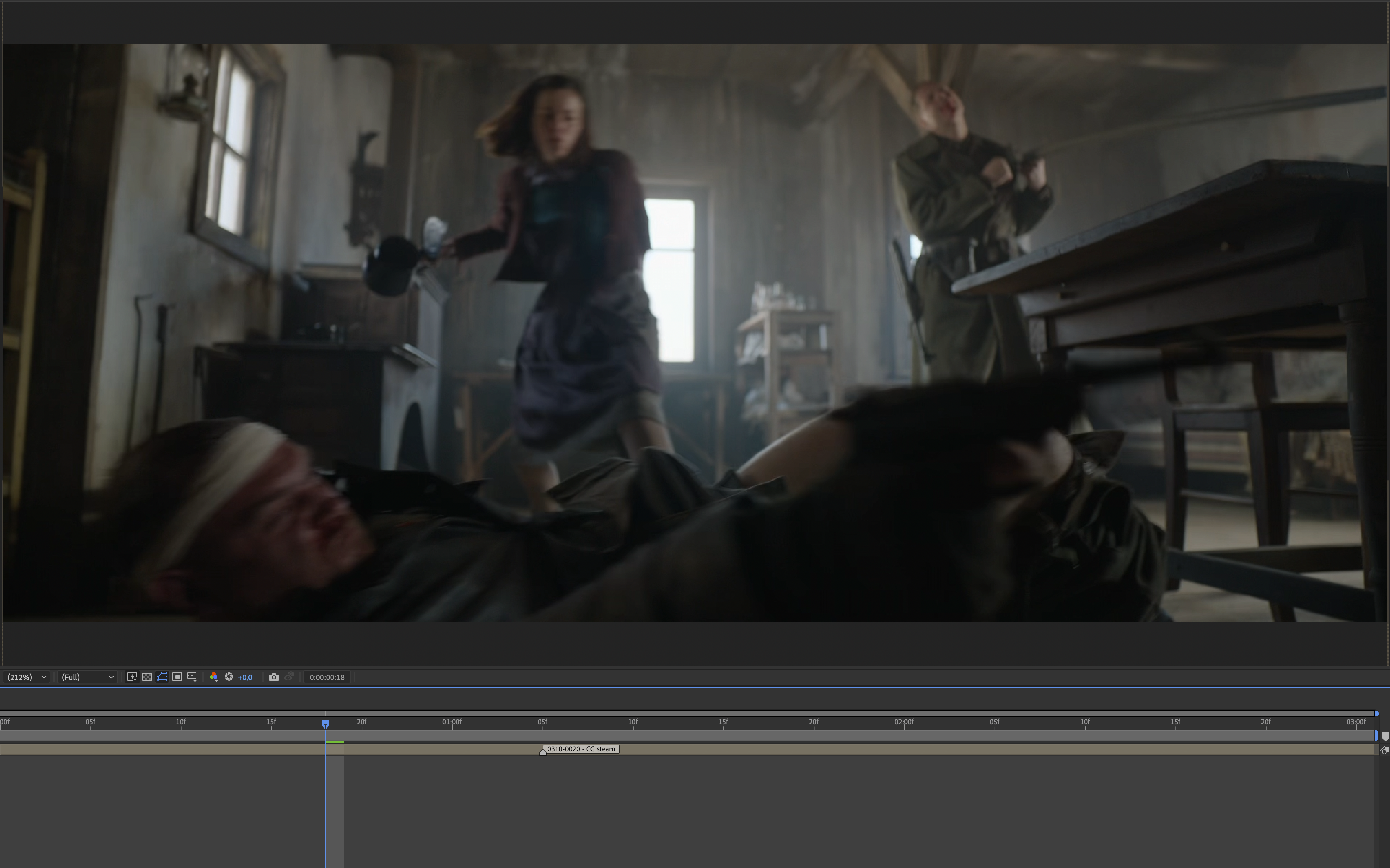 Open your Composition and you will find all your layers inside, as well as a marker showing you any effect that was applied in Final Cut Pro. Not only does it preserve the layers and timing of your shots, but it will also import the audio of your Synchronized/Multicam clips. This was very helpful on this project, because there were a lot of muzzle flashes that needed to fit to the sound layout.