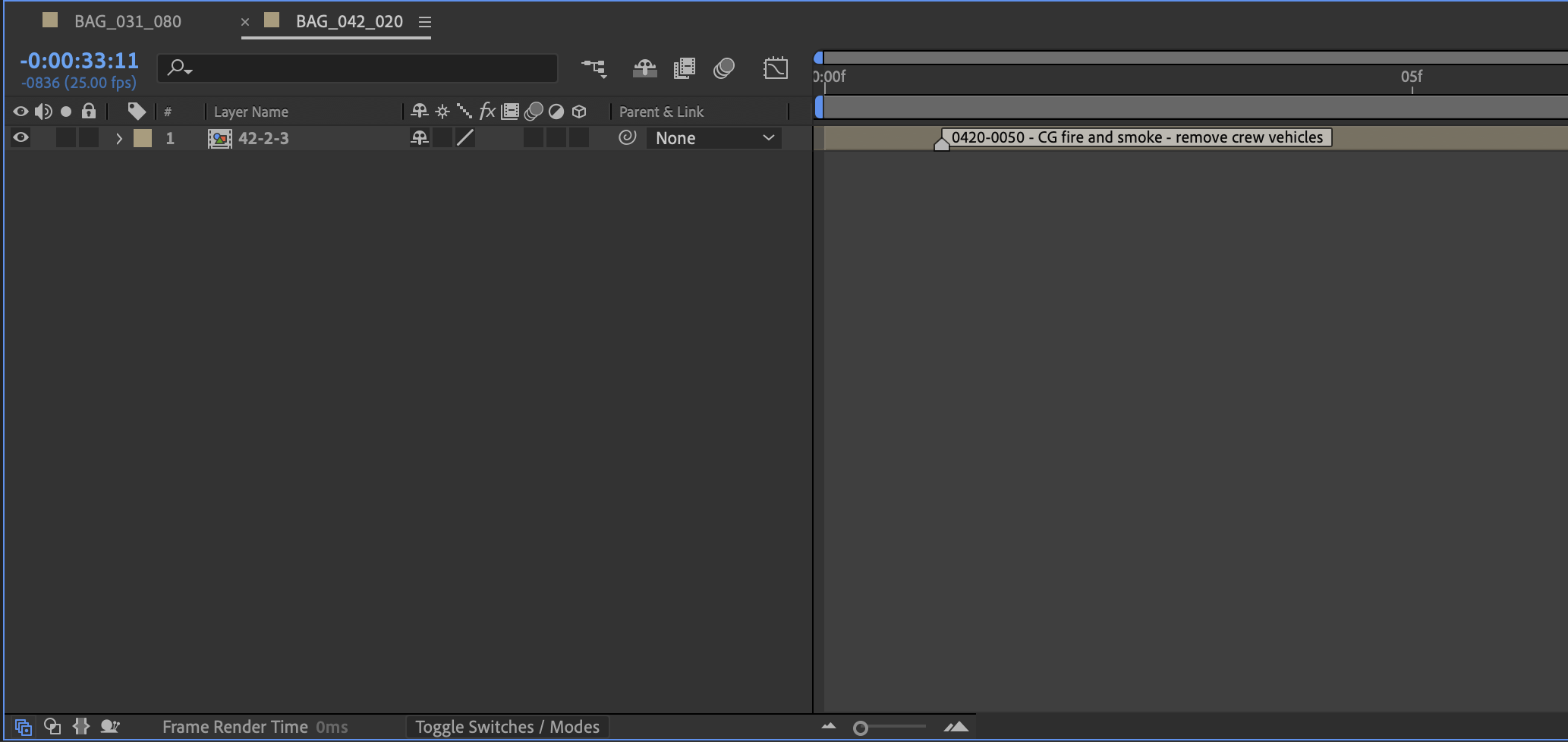 Once the work on a shot was done, I'd color-label the shots in After Effects. Using Templates and presets I was quickly able to add the shots to the Render Queue and export them to a pre-defined folder.