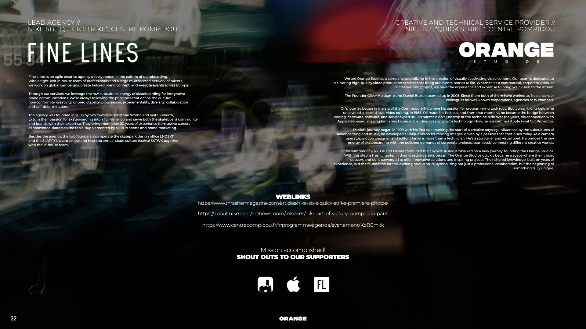 Special thanks to Oliver Holtkamp at Orange Studios and Nike for providing all of the above material.