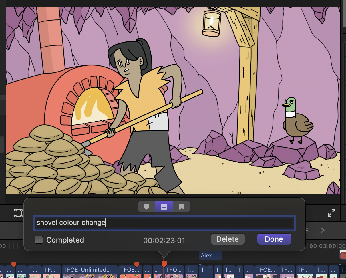 Once I got into the edit, I would use Mike’s animatic for timing, to spot any unwanted changes that may have occurred during the migration, and to spot missing shots that may have gone unallocated or missed by the team. On episode one, I would sometimes use the .xml from the animatics to do scene detection in DaVinci Resolve, however I found that the exports from Storyboard Pro were reliable, so I abandoned this step pretty early on.