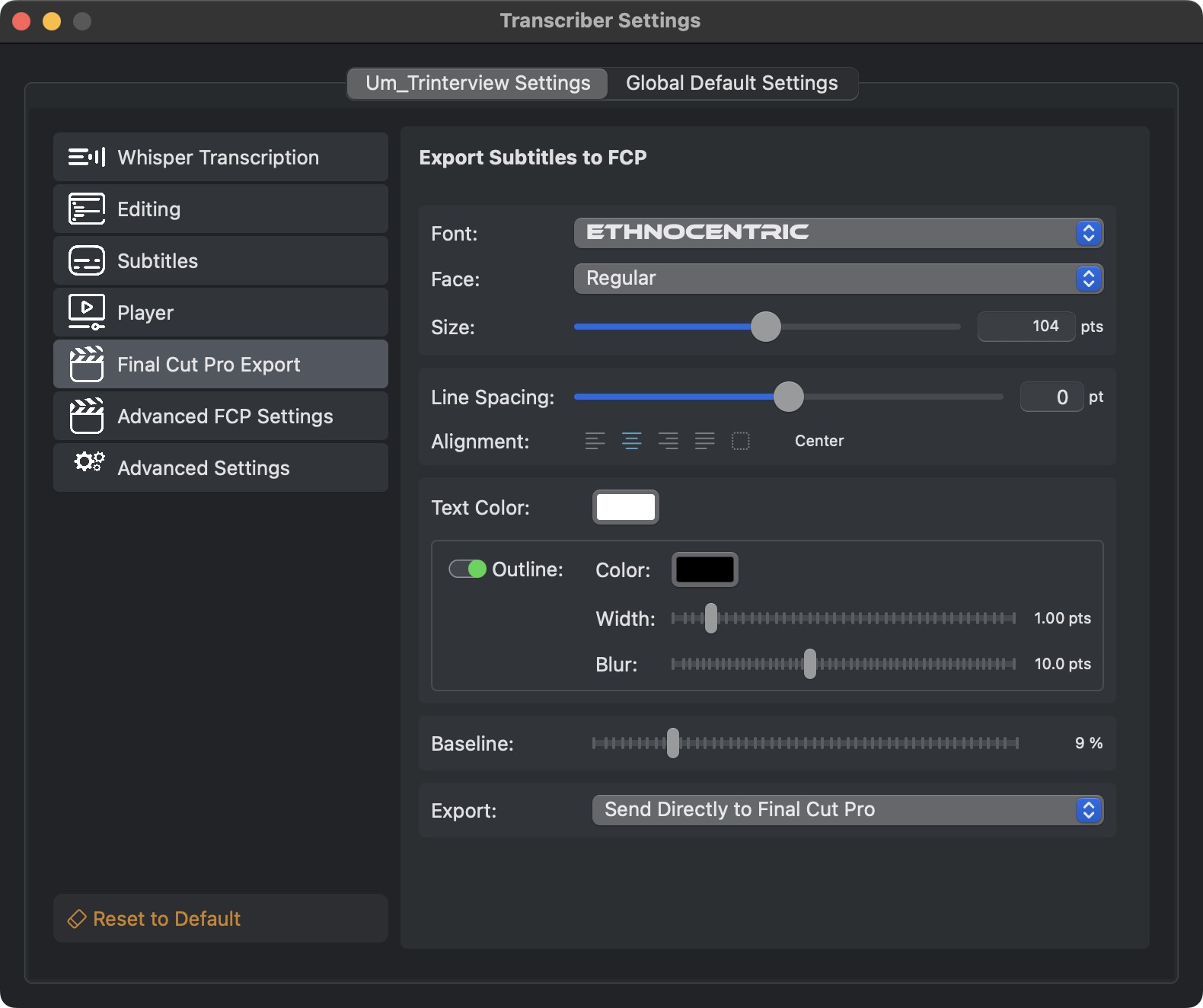 Exporting to Final Cut Pro