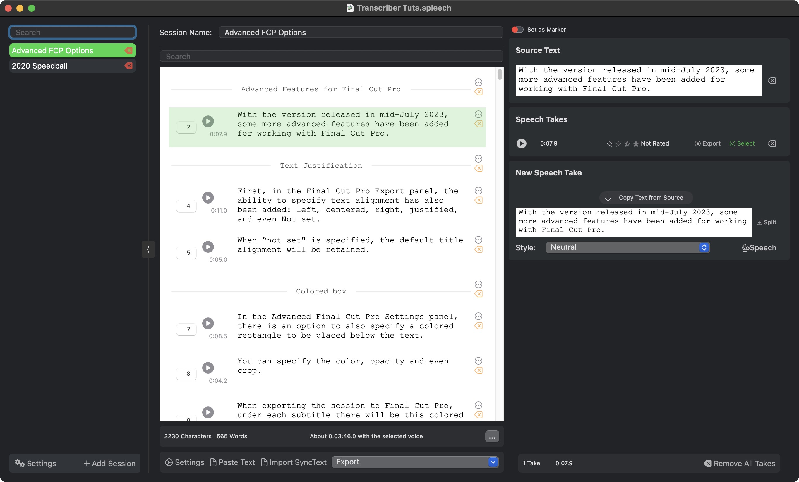And so I did, in the span of only one day I added all the features that were already in FCP SRT Importer 2 directly inside Transcriber.