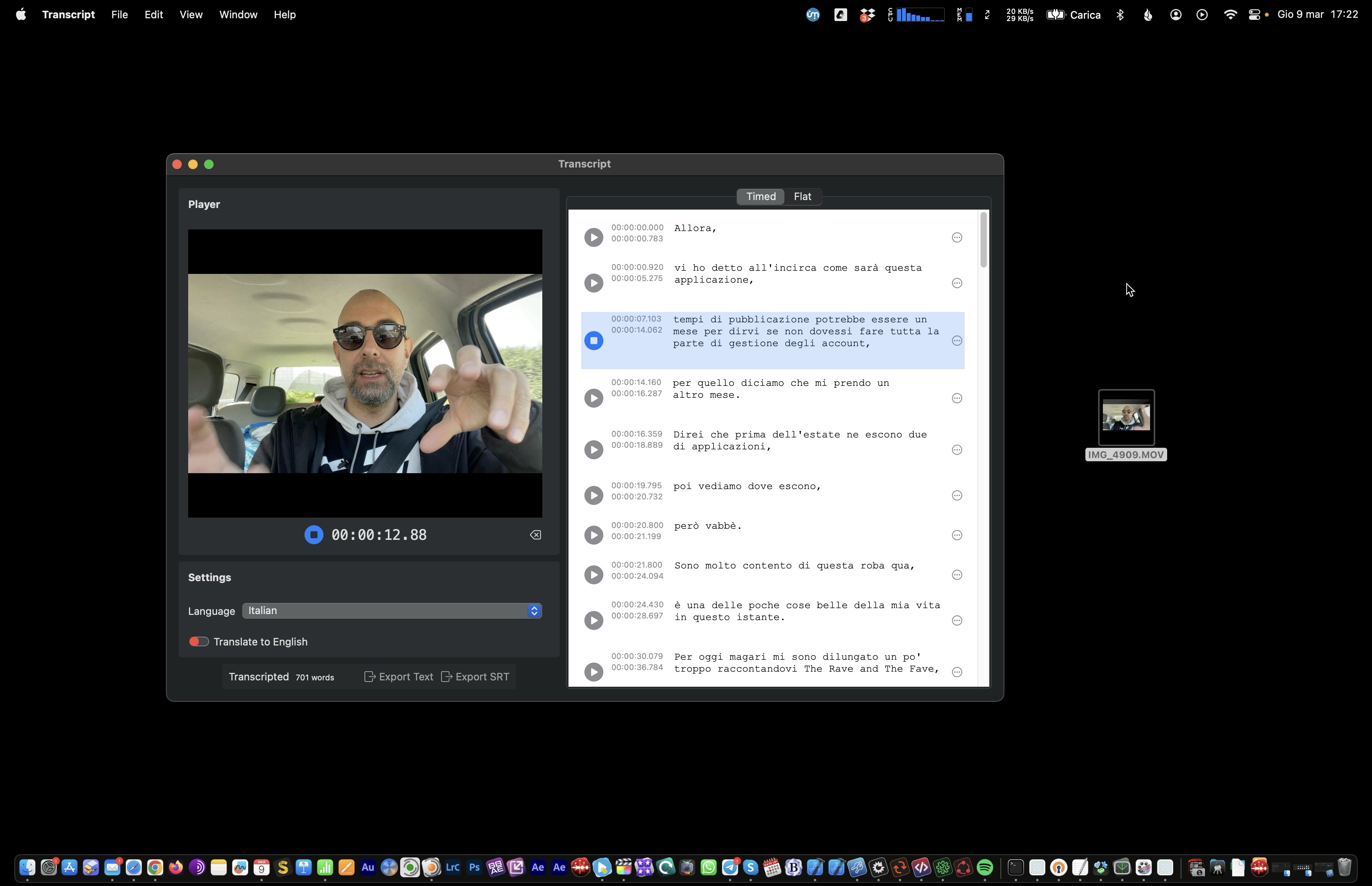 I was finally able to post news of the launch on Twitter with the link to be able to download the app in trial mode (for the record: in the trial version it allows you to transcribe the first 45 seconds of the movie or import subtitles for the first 45 seconds).