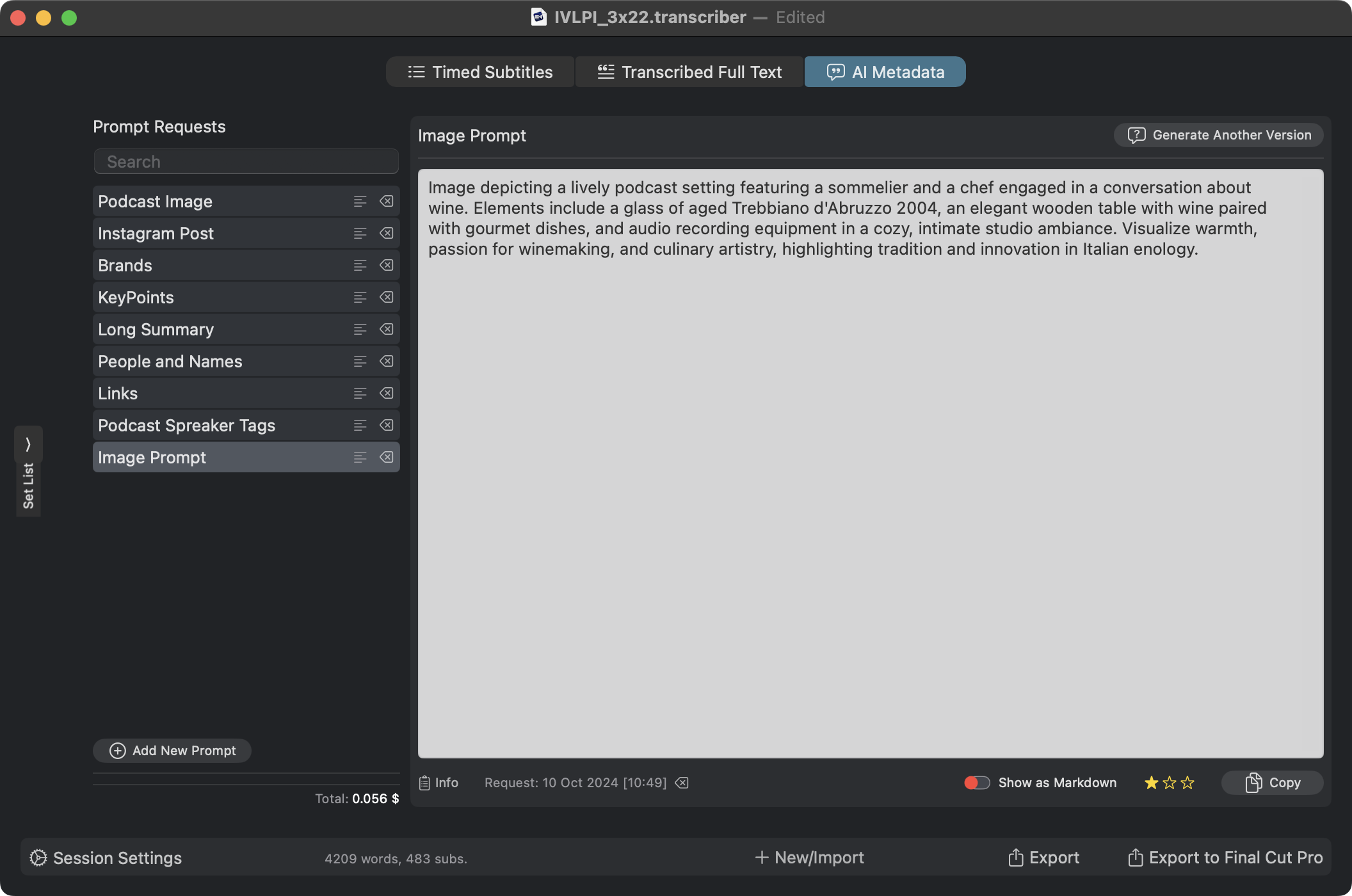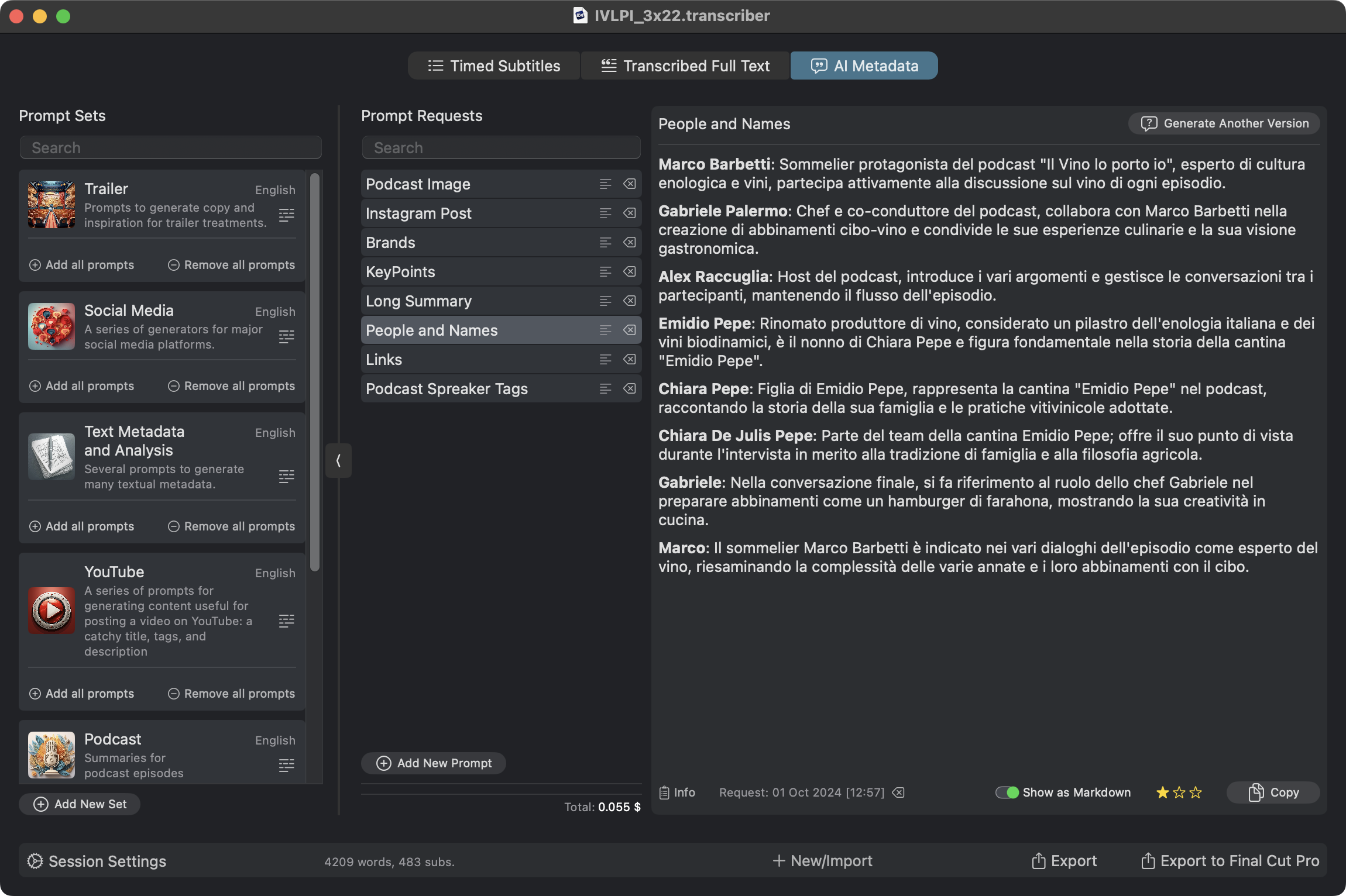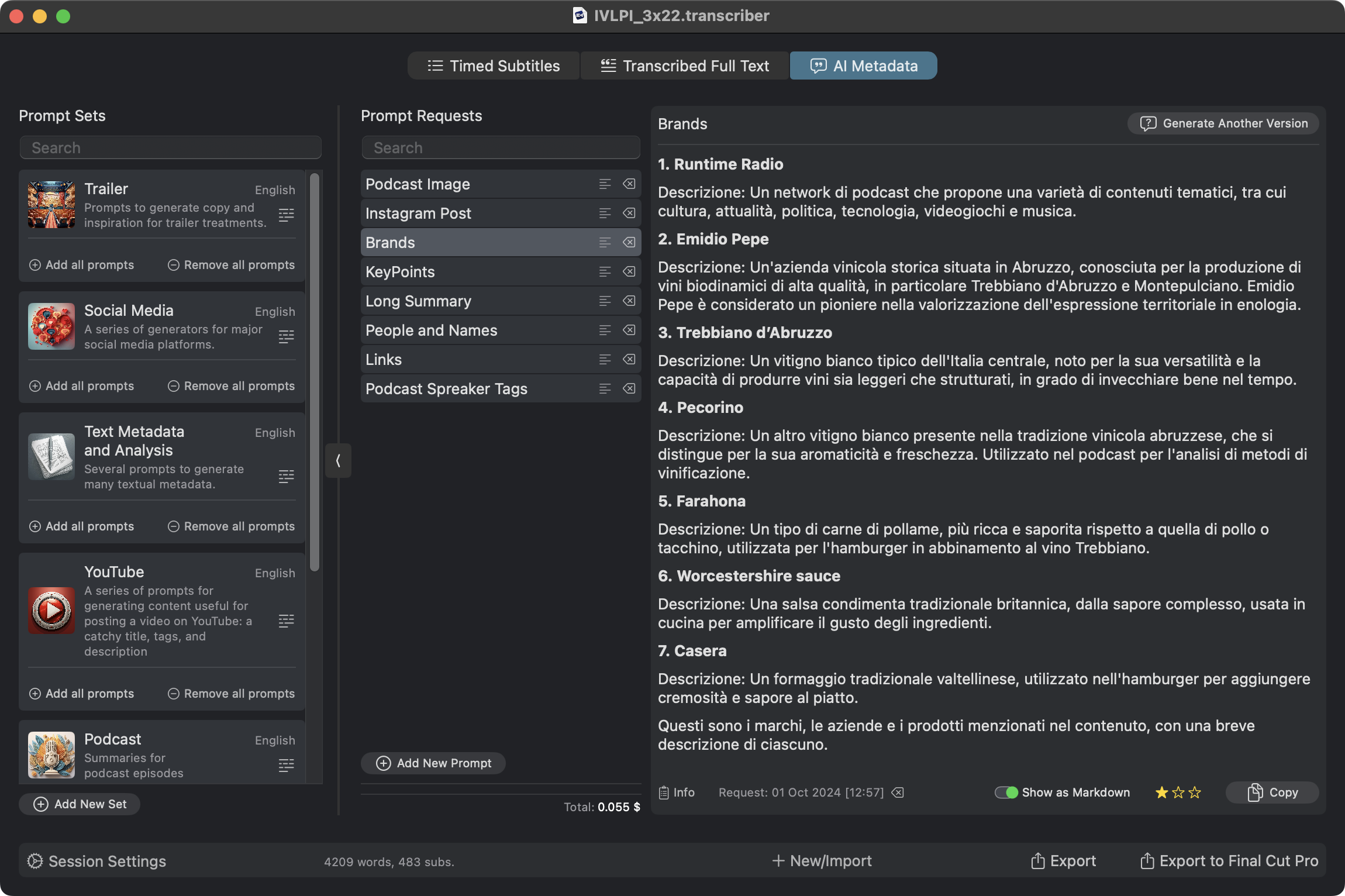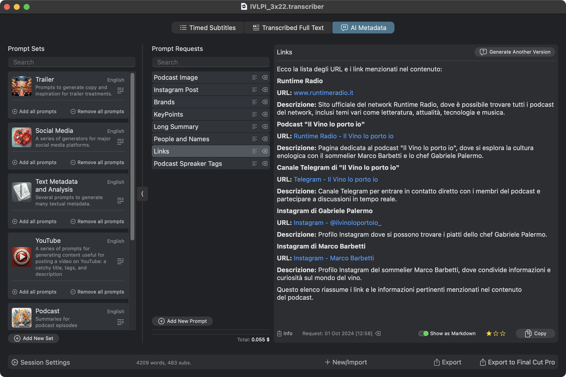 Always starting from the content I create, particularly the wine podcast, I developed some prompts that allowed me to have a fresh look at the content itself.