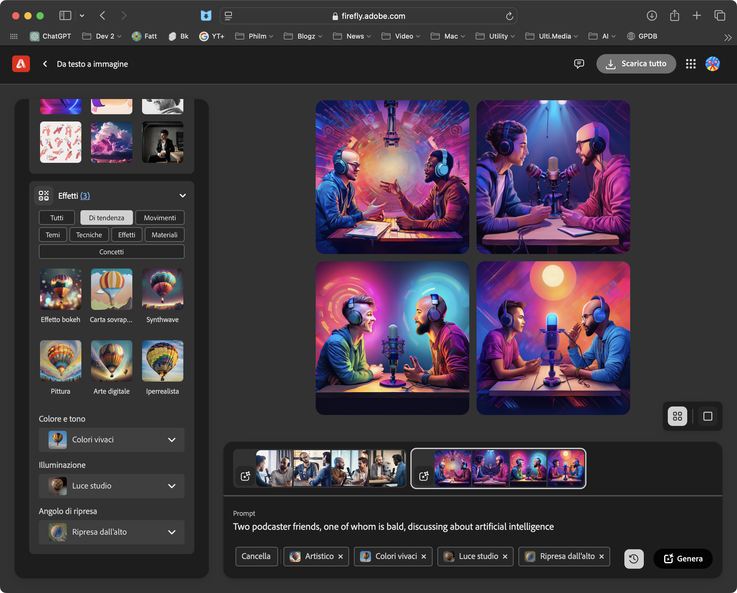 So I generated a prompt that generates a prompt... Basically, instead of me writing what I needed, as I always did, I asked the artificial intelligence, again via one of NQR's prompts, to write the prompt for generating the image, to be passed then, by copying and pasting it, into Firefly.