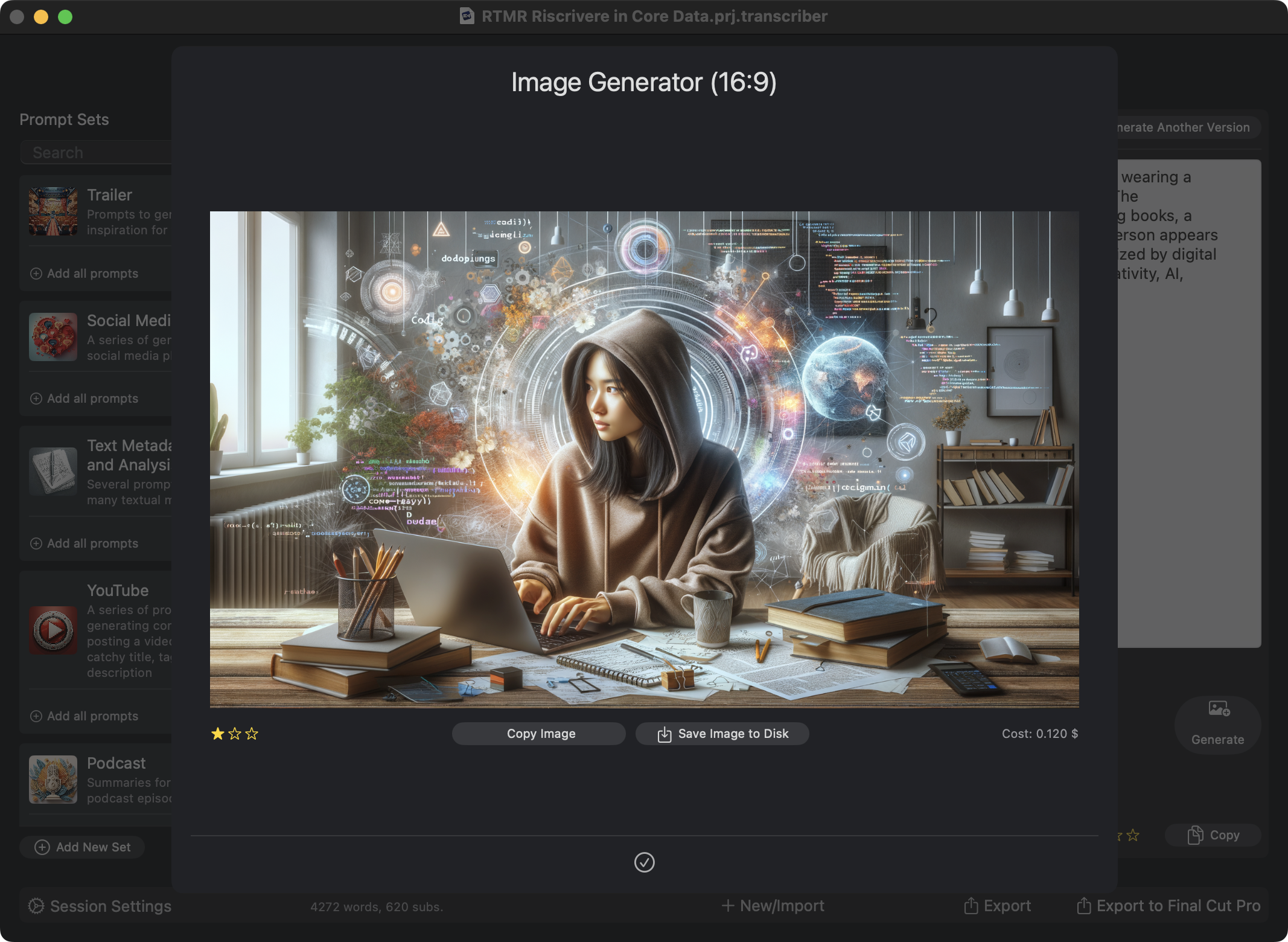 But then, since OpenAI has the API to directly generate images with the DALL-E model, I thought it would be nice to bypass this whole round. At a not insignificant cost-we're speaking of a few cents, not a few thousandths-I decided to go ahead with direct generation.