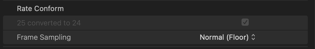Final Cut Pro is forcefully doing a rate conform from 25 converted to 24.