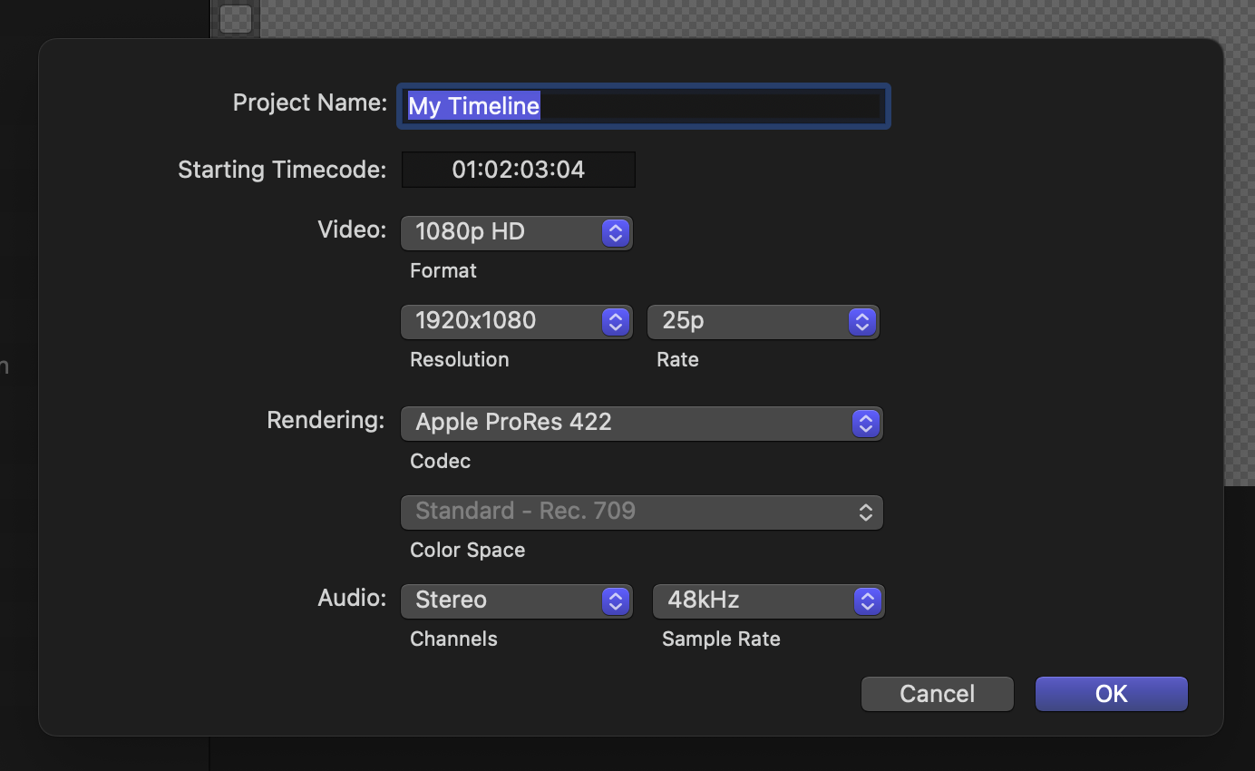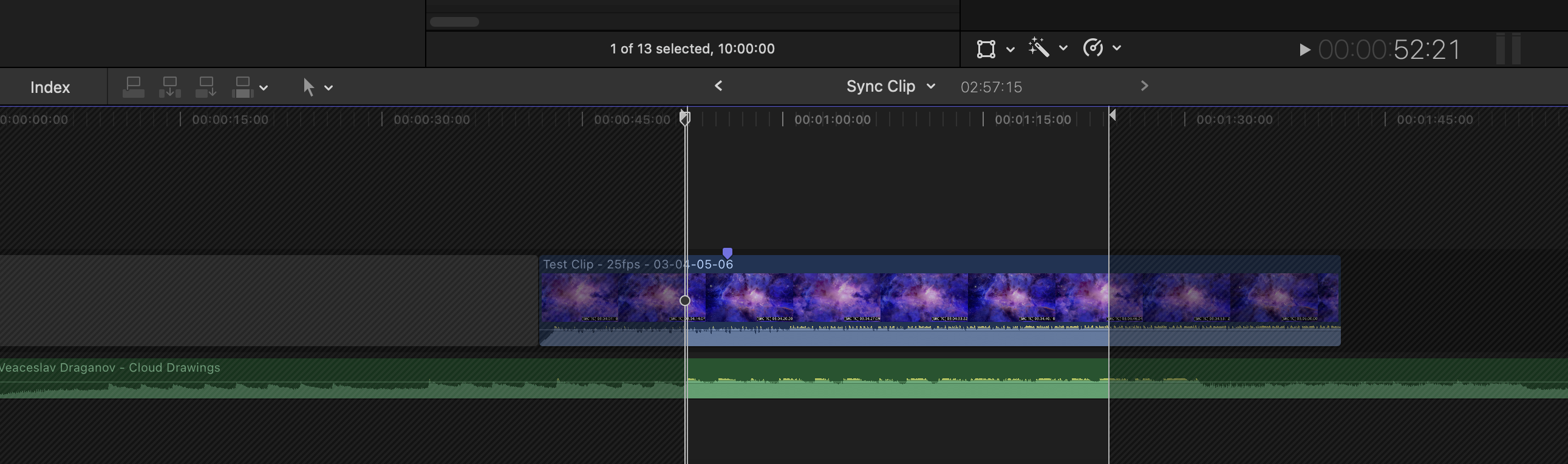 On the Primary Storyline we have a Gap, and then a 1920x1080 @ 25fps ProRes clip with audio.