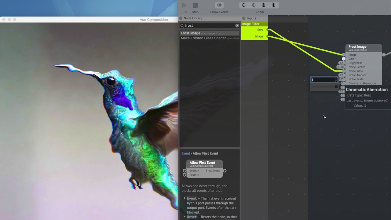 FxCore is a node-based compositing engine inspired by Quartz Composer and designed for the demanding workloads of visual effects hosted by video applications.