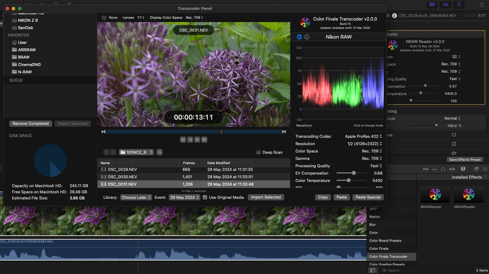 Interestingly, Compressor now includes a Apple ProRes RAW Processor Media Extension plugin.