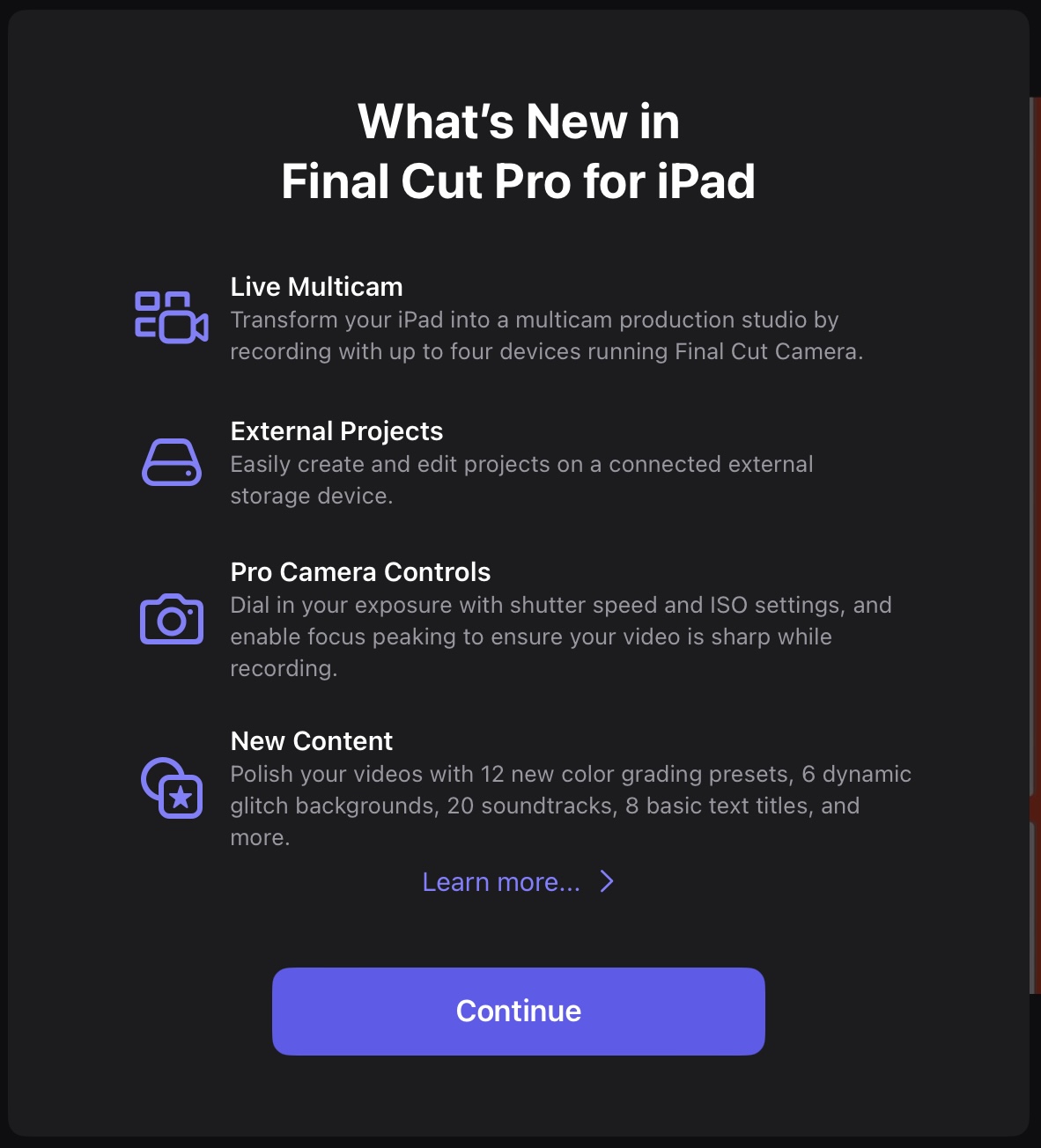 Final Cut Pro for iPad v2.3 includes the following features and enhancements: