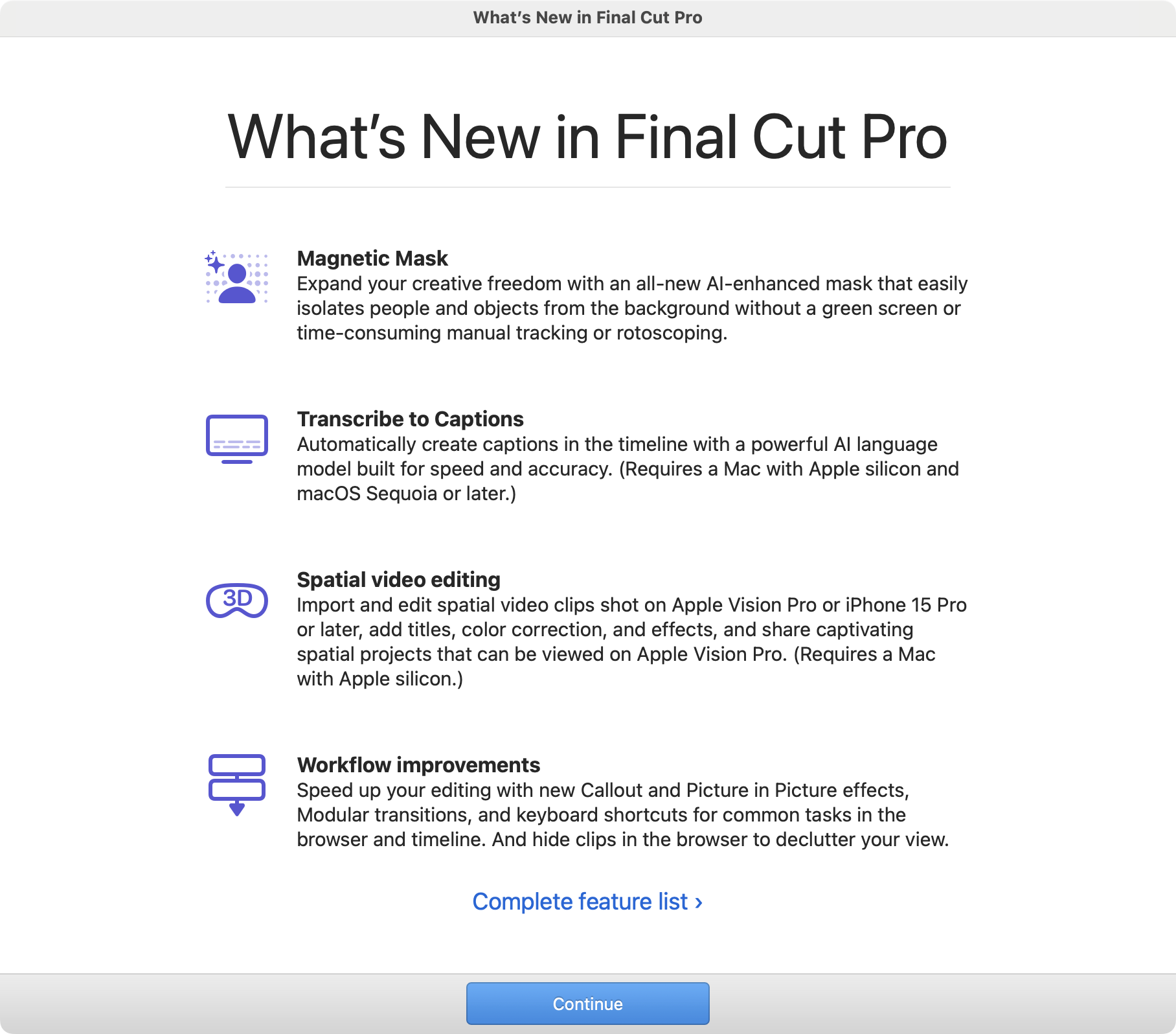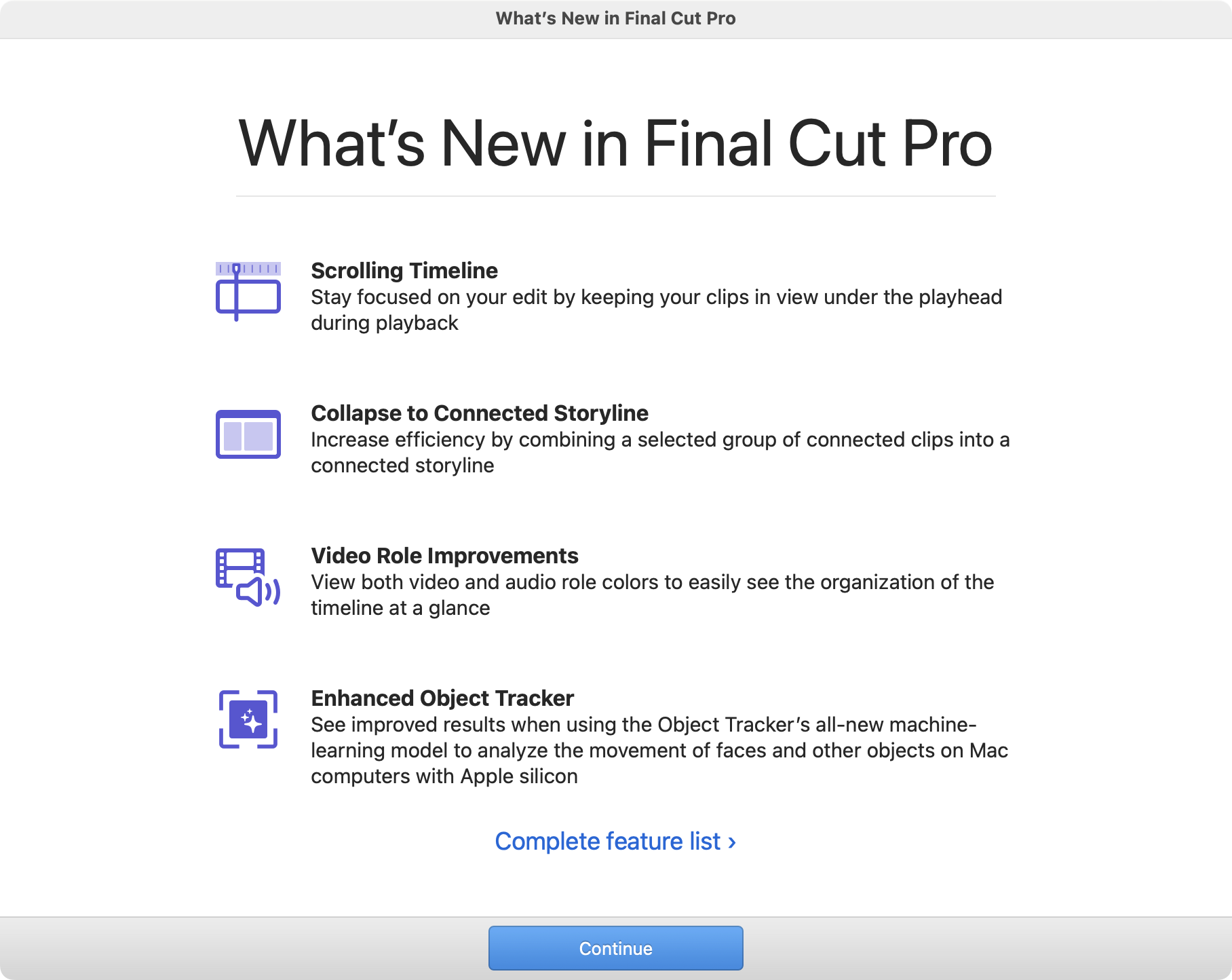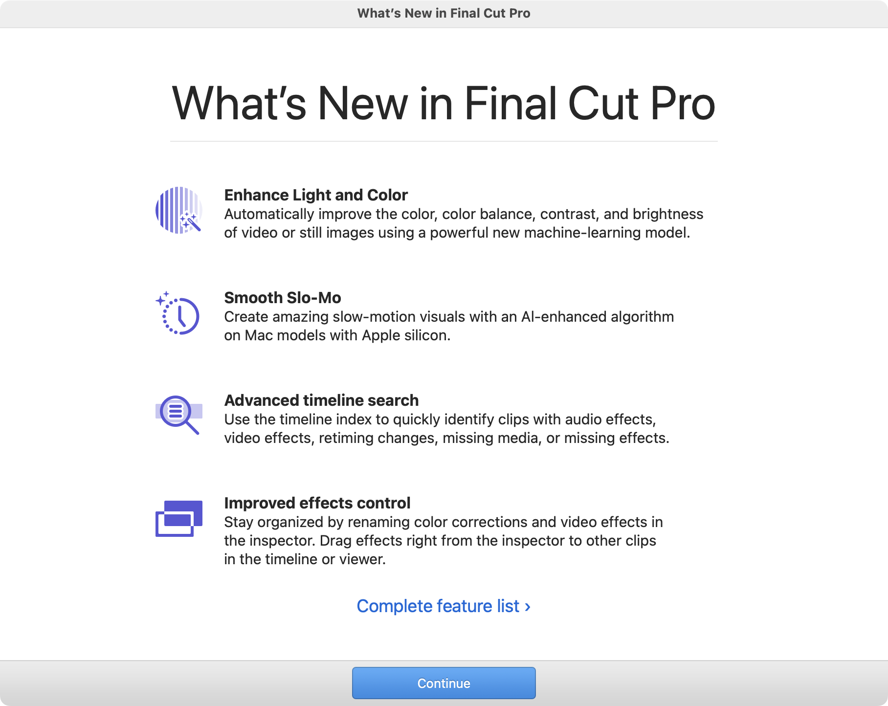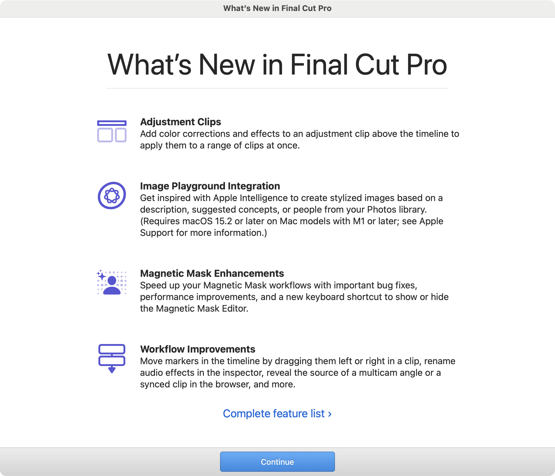 Final Cut Pro v11.2 includes the following enhancements, changes, and bug fixes: