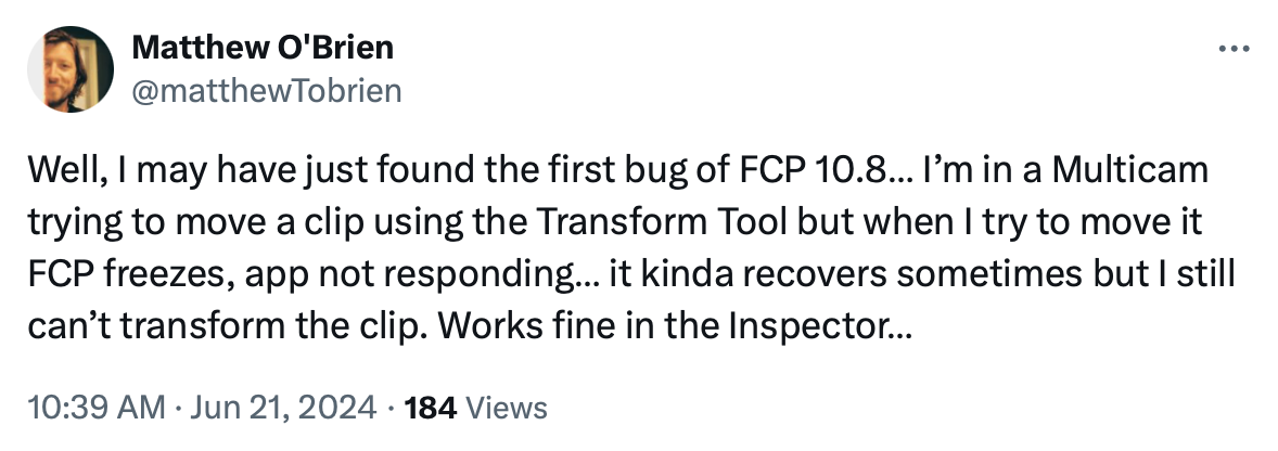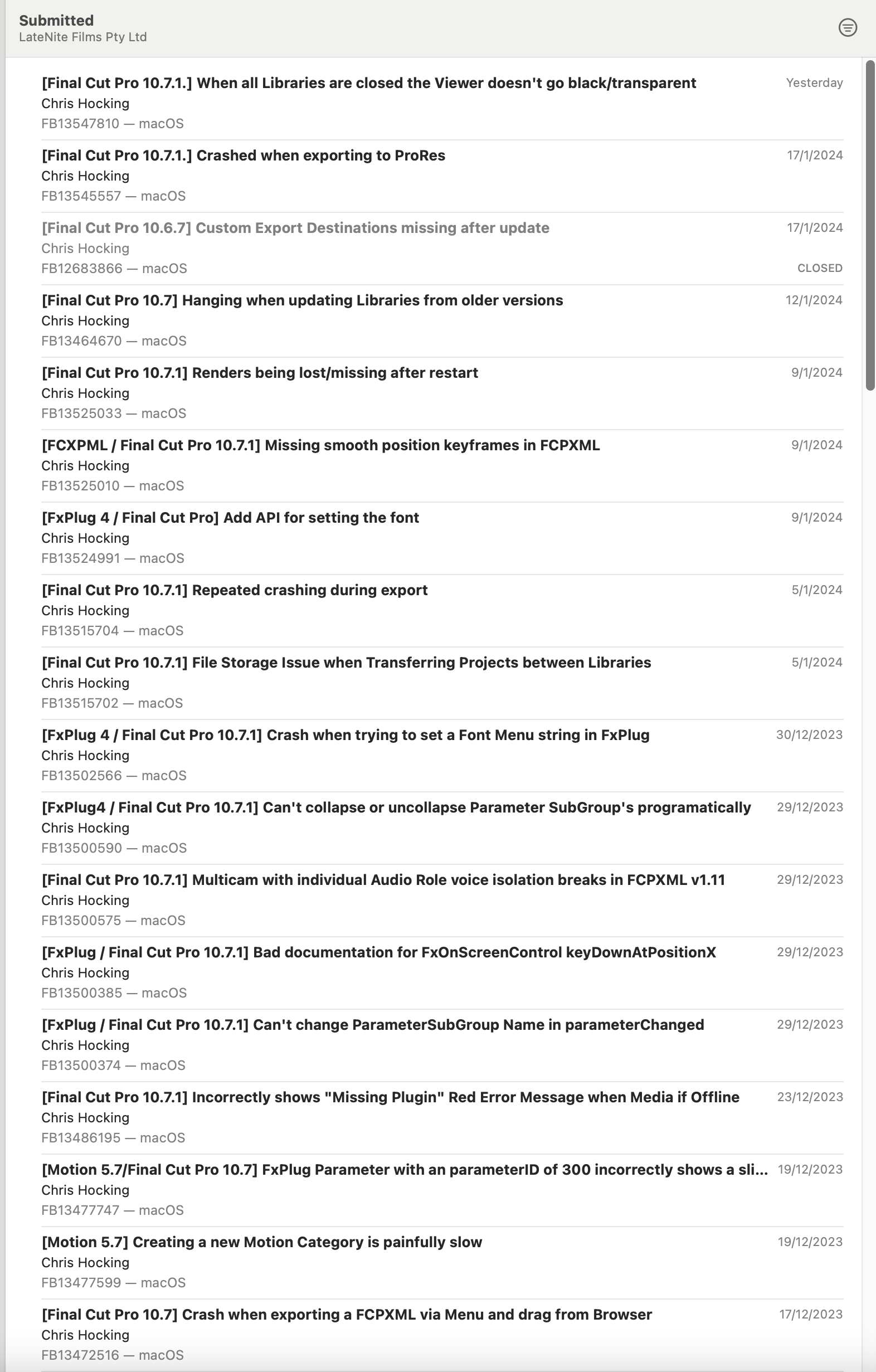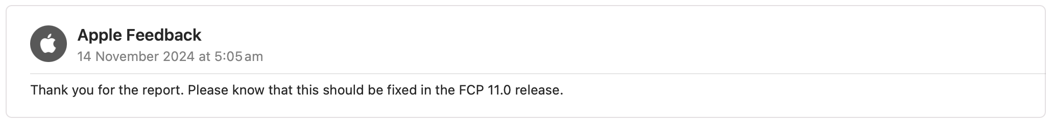 We've recently reported two annoying Final Cut Pro 10.6.6 bugs to be across:
