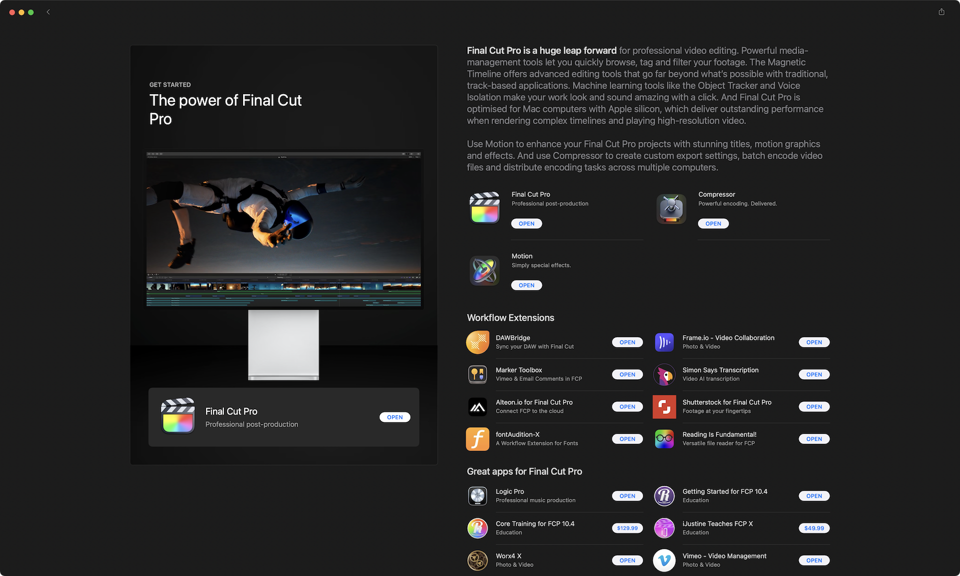 For developers, FCPXML remains on v1.13, FxPlug remains on v4.3.3, Workflow Extensions remains on v1.0.3.