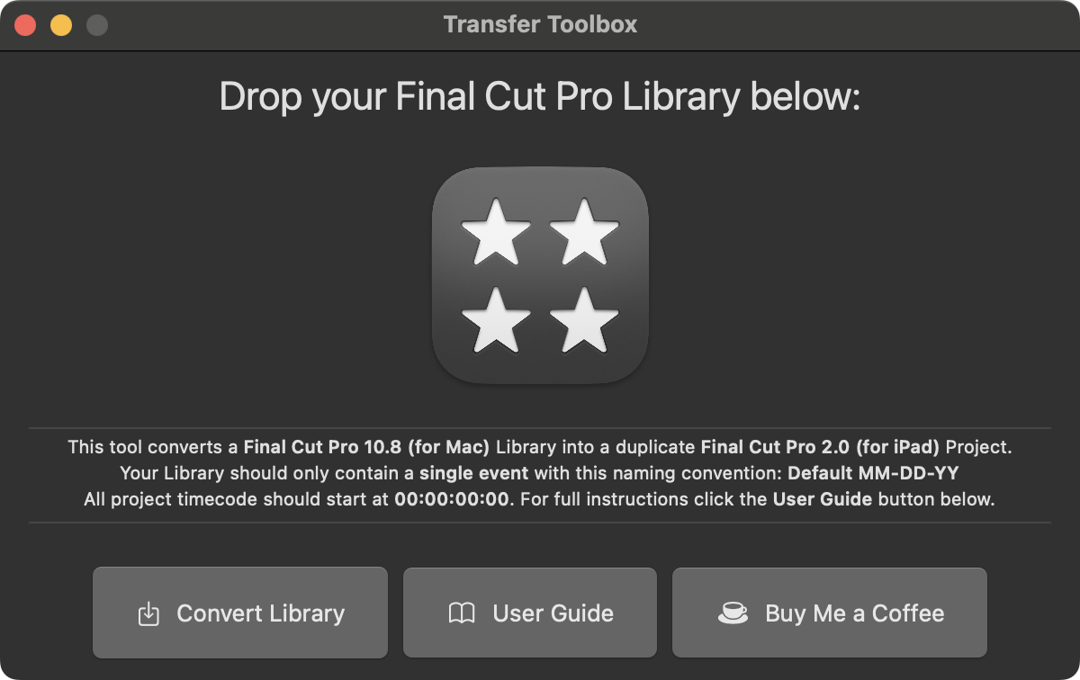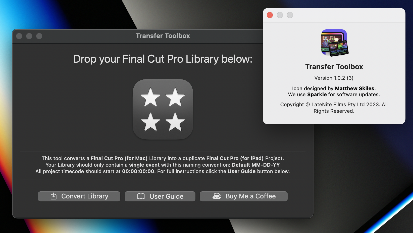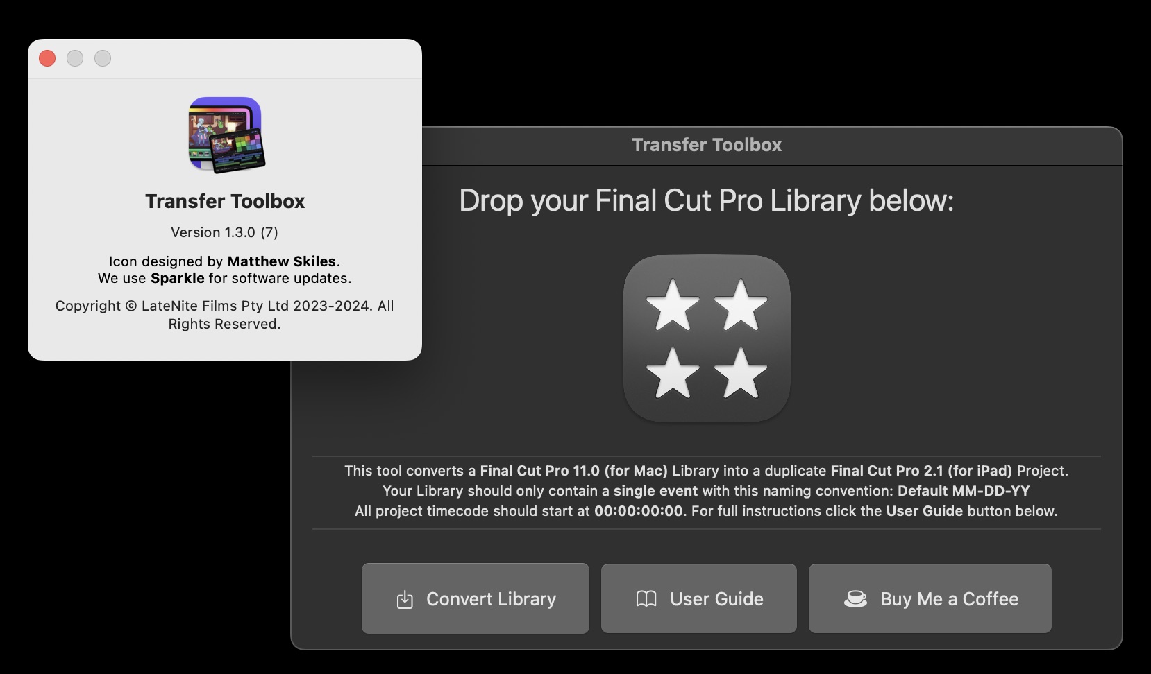 Chris at LateNite has also announced Transfer Toolbox on Twitter, allowing you to convert Final Cut Pro (for Mac) libraries into Final Cut Pro (for iPad) projects.